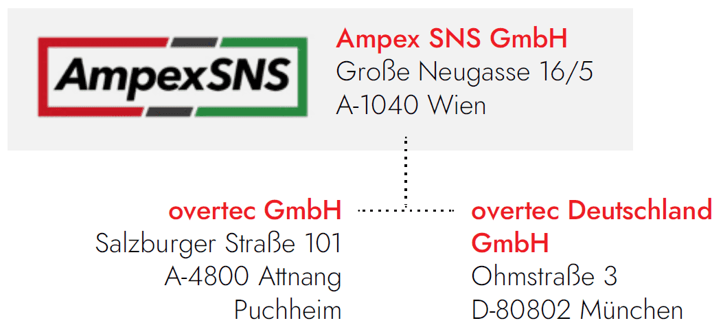 Das Team von overtec ist auf drei Standorte aufgeteilt: Die Produktion und ein Büro in Attnang-Puchheim, ein weiteres Büro in Wien und ein Vertriebsstandort in Nordrhein Westfalen. Für unsere Kunden setzen wir im Vertrieb auf persönliche Nähe, während unser Backoffice über unsere Standorte hinweg bestens digital vernetzt ist und Ihr Projekt professionell abwickelt. Wir freuen uns auf Ihre Anfrage und hoffen, dass wir Ihre Erwartungen übertreffen können.